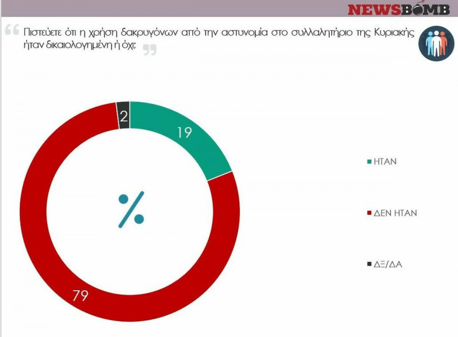 Δημοσκόπηση prorata για αστυνομική βίαΜάλιστα μεταξύ των εκλογέων που αισθάνονται εγγύτερα στο ΣΥΡΙΖΑ, το ποσοστό εκείνων που χαρκτήρισαν δικαιολογημένη τη χρήση των δακρυγόνων είναι πλειοψηφικό και φτάνει στο 59%. Αντιθέτως, οι ψηφοφόροι που τοποθετούνται πλησιέστερα στη ΝΔ, το ΚΙΝΑΛ ή τη Χρυσή Αυγή χαρακτηρίζουν ως μη δικαιολογημένη τη χρήση δακρυγόνων σε συντριπτικά ποσοστά.