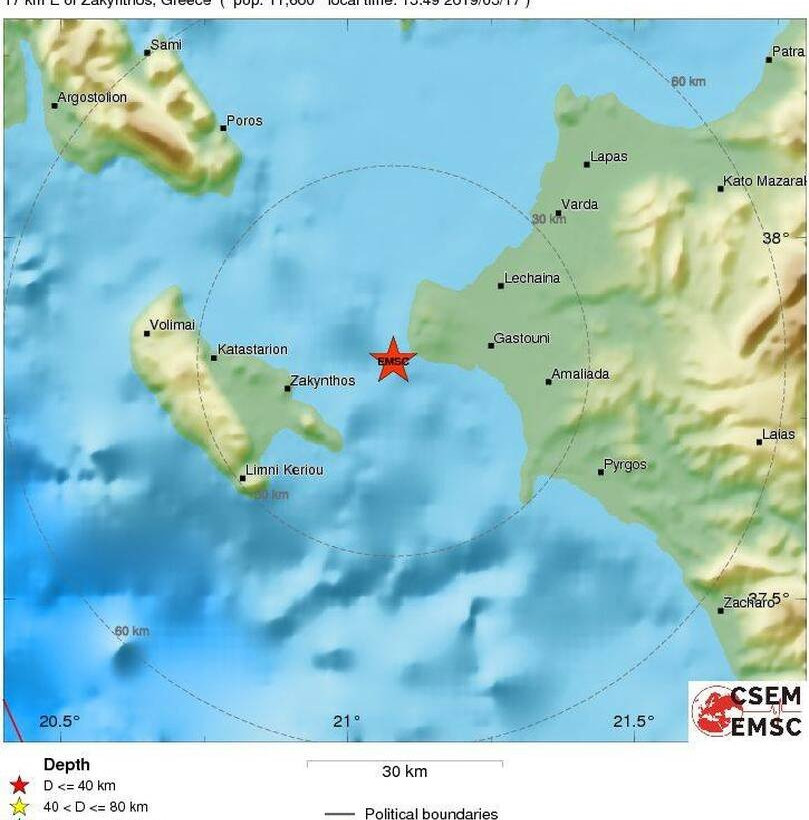 Σεισμός 4,5 Ρίχτερ ταρακούνησε τη Ζάκυνθο