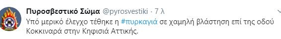 Η Πυροσβεστική Υπηρεσία κατάφερε να θέσει υπό έλεγχο την πυρκαγιά που ξέσπασε σήμερα (1/8/2019) το μεσημέρι επί της οδού Κοκκιναρά, όπου βρίσκεται και το γνωστό ρέμα της Κηφισιάς.