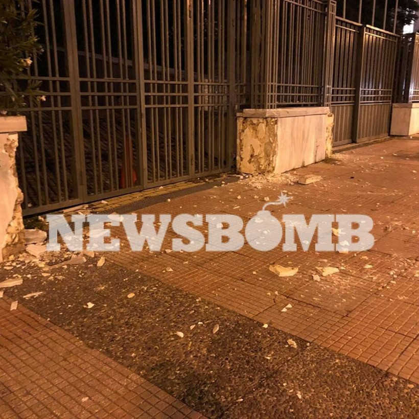 Διαδηλωτές πέταξαν μολότοφ, πέτρες και μπουκάλια κατά της διμοιρίας ΜΑΤ που βρισκόταν μπροστά από την πρεσβεία ενώ έβαλαν και φωτιά σε κάδους απορριμάτων.
