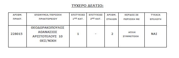 Το «χρυσό» δελτίο κατατέθηκε σε πρακτορείο του ΟΠΑΠ, στην οδό Αριστοτέλους 10 στη Θεσσαλονίκη. Επρόκειτο για απλή συμμετοχή με τυχαία επιλογή.