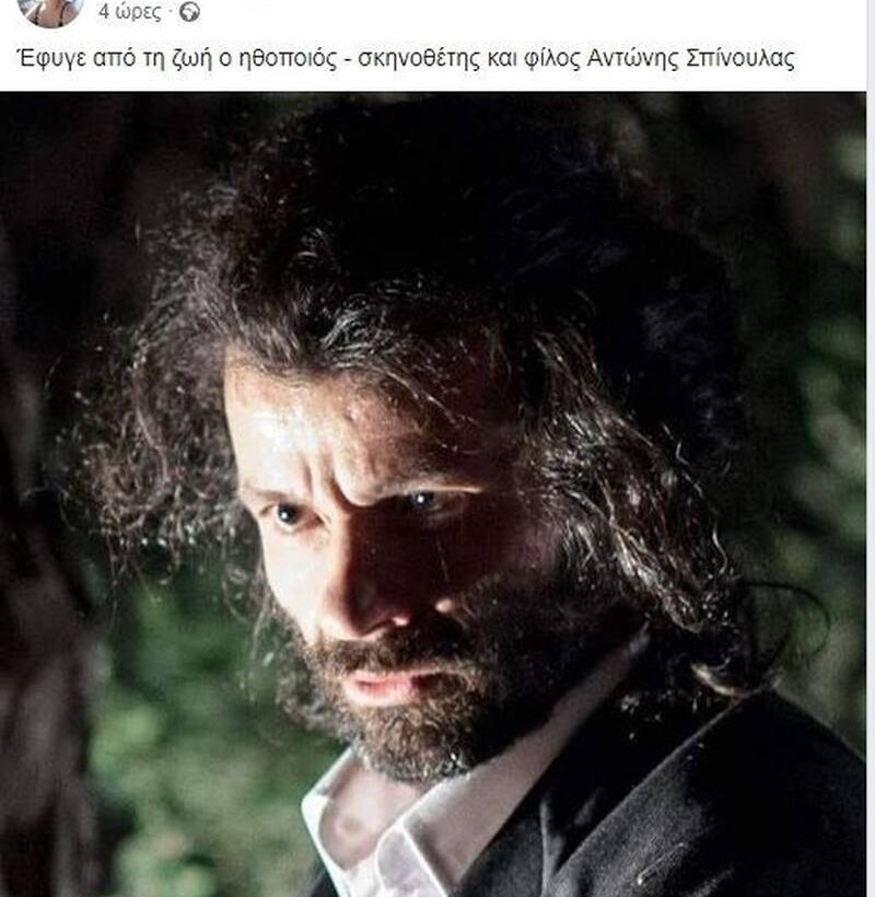 Θλίψη στον καλλιτεχνικό κόσμο προκάλεσε ο θάνατος του ηθοποιού και σκηνοθέτη, Αντώνη Σπίνουλα.