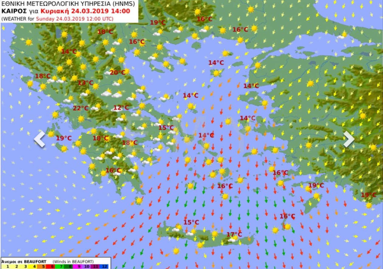Ο καιρός την Κυριακή, 24 Μαρτίου