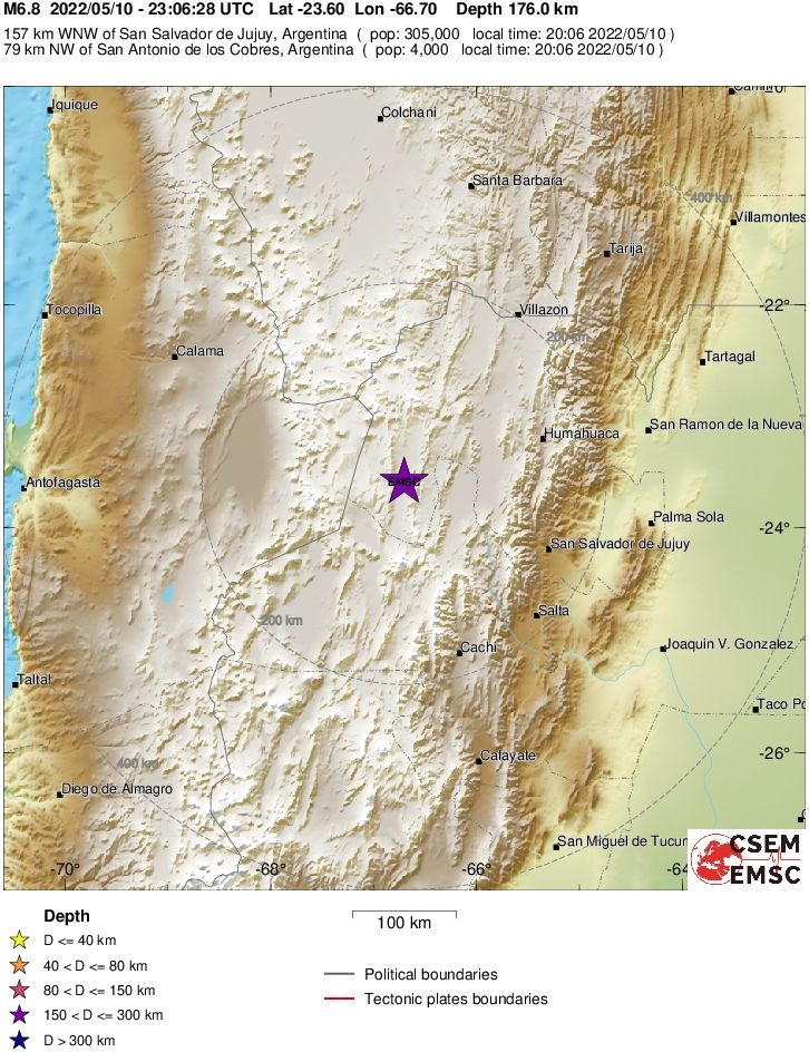 Σεισμός Τώρα - Όλες οι ειδήσεις: Ισχυρή σεισμική δόνηση μεγέθους 6,8 βαθμών της κλίμακας Ρίχτερ, έπληξε την Τρίτη, στις 20:06 (τοπική ώρα) περιοχή της βορειοδυτικής Αργεντινής, κοντά στα σύνορα με τη Χιλή, όπως ανακοίνωσε το Αμερικανικό Ινστιτούτο Γεωλογικής Επισκόπησης (USGS).