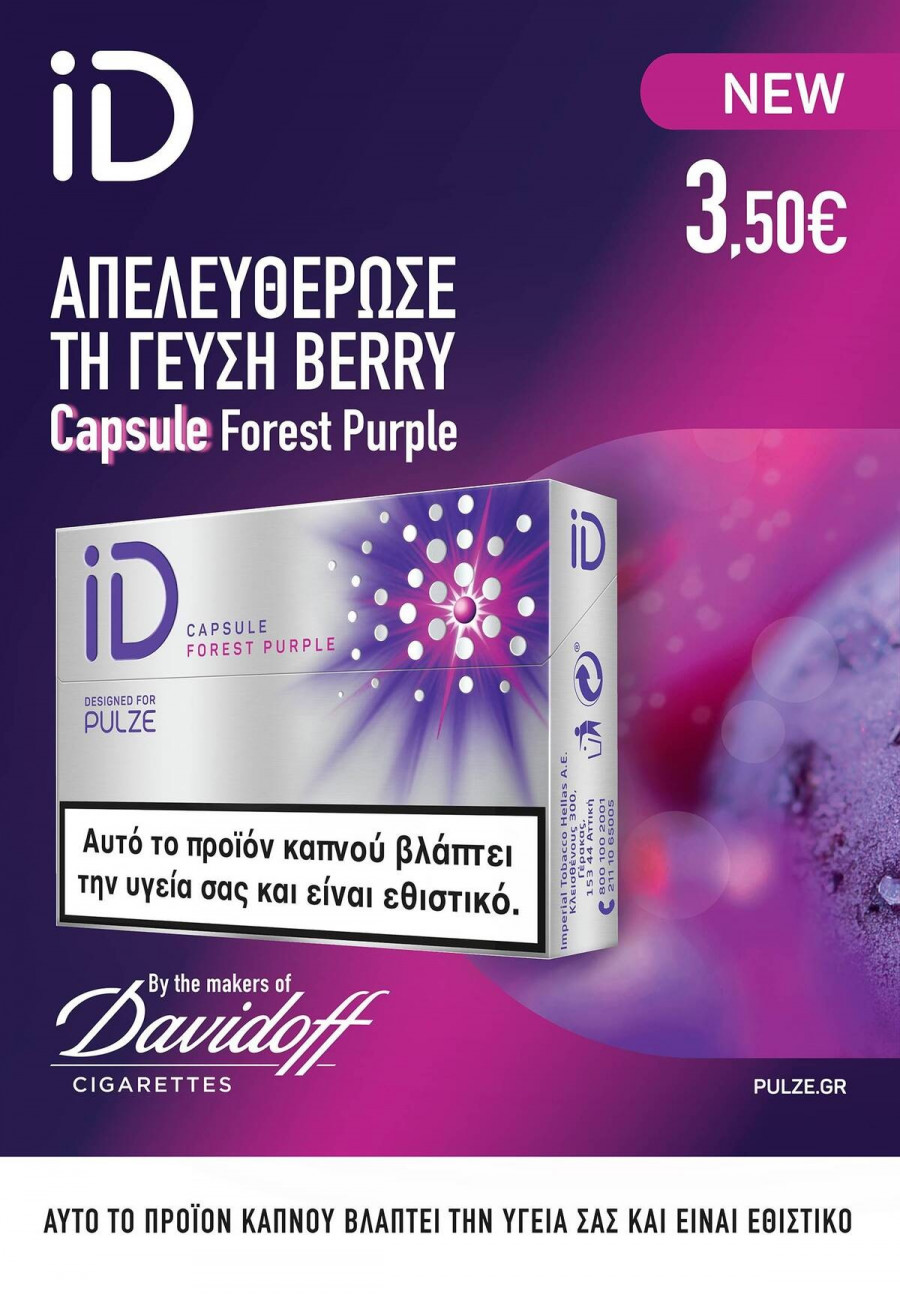 Δύο Νέες Γεύσεις έρχονται να συμπληρώσουν τη γκάμα των ράβδων θερμαινόμενου καπνού iD, από τους δημιουργούς των τσιγάρων Davidoff. iD Capsule Forest Purple, για μια αρωματική εμπειρία από νότες Berries και iD Capsule Summer Red για μια δροσιστική γεύση Watermelon, σπάζοντας την γευστική μπίλια στο φίλτρο.