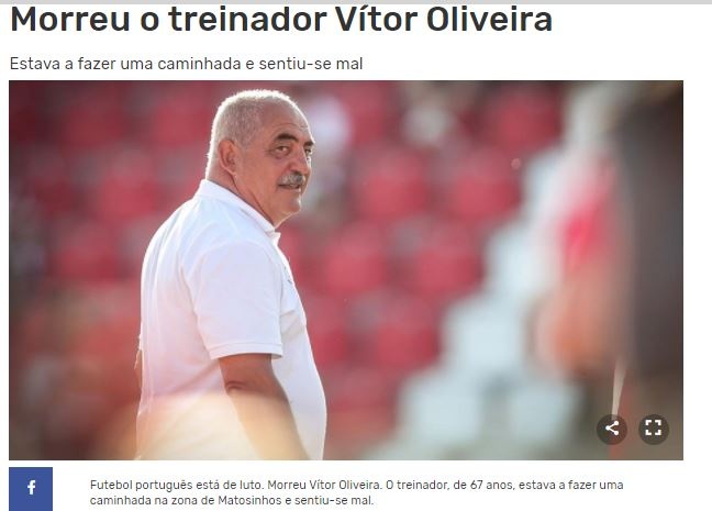 Σοκ έχει προκαλέσει στο ποδόσφαιρο η έιδηση του θανάτου του προπονητή Βίτορ Ολιβέιρα.