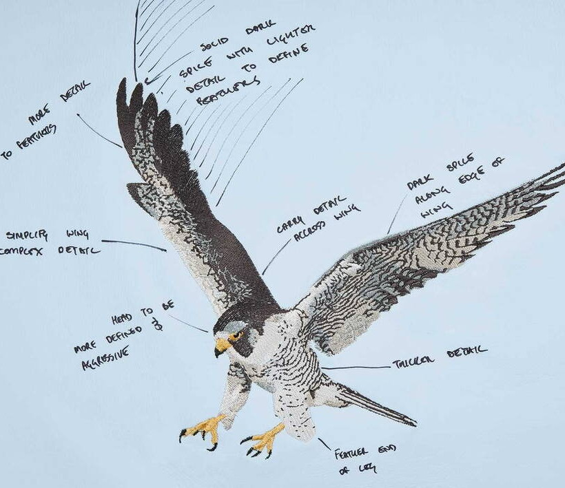 Προκειμένου το γεράκι, που τελικά κεντήθηκε στο δέρμα με περισσότερες από 250.000 βελονιές, να είναι όσο το δυνατόν πιο αληθοφανές οι ειδικοί της βρετανικής εταιρείας το ανέλυσαν πλήρως και δημιούργησαν διάφορες εκδοχές προκειμένου να επιλεγεί η τελική στην οποία τονίζεται με ακρίβεια το πέταγμα και η δυναμική των κινήσεών του.