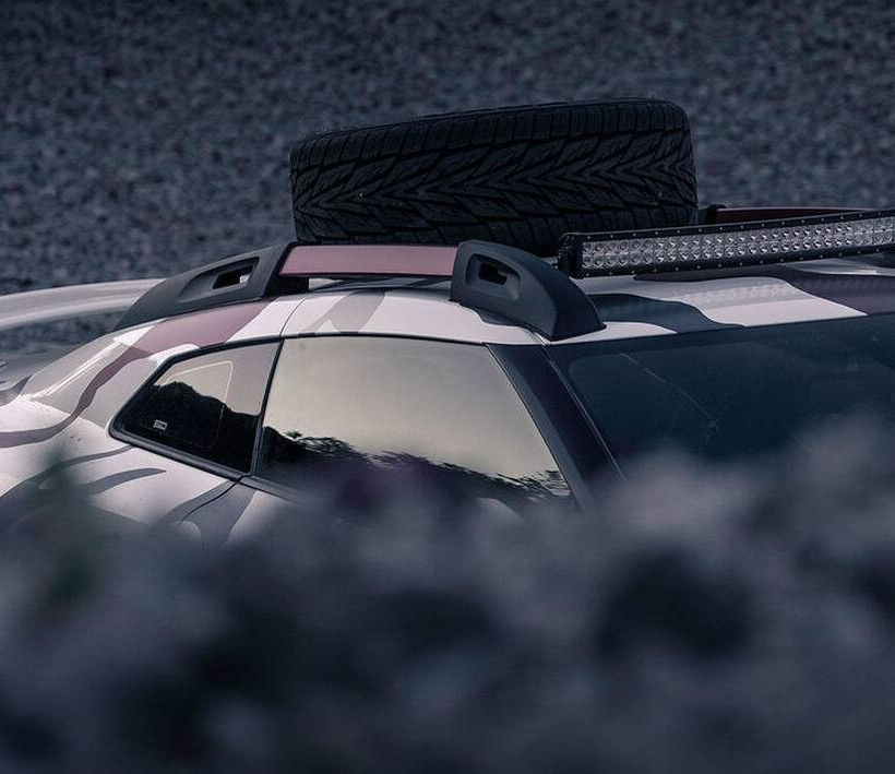 Η εικόνα ολοκληρώνεται από την σχάρα οροφής στην οποία έχει τοποθετηθεί και μια ρεζέρβα, τους πρόσθετους προβολείς στο προφυλακτήρα και την οροφή αλλά και από τη βαφή καμουφλάζ του αμαξώματος.