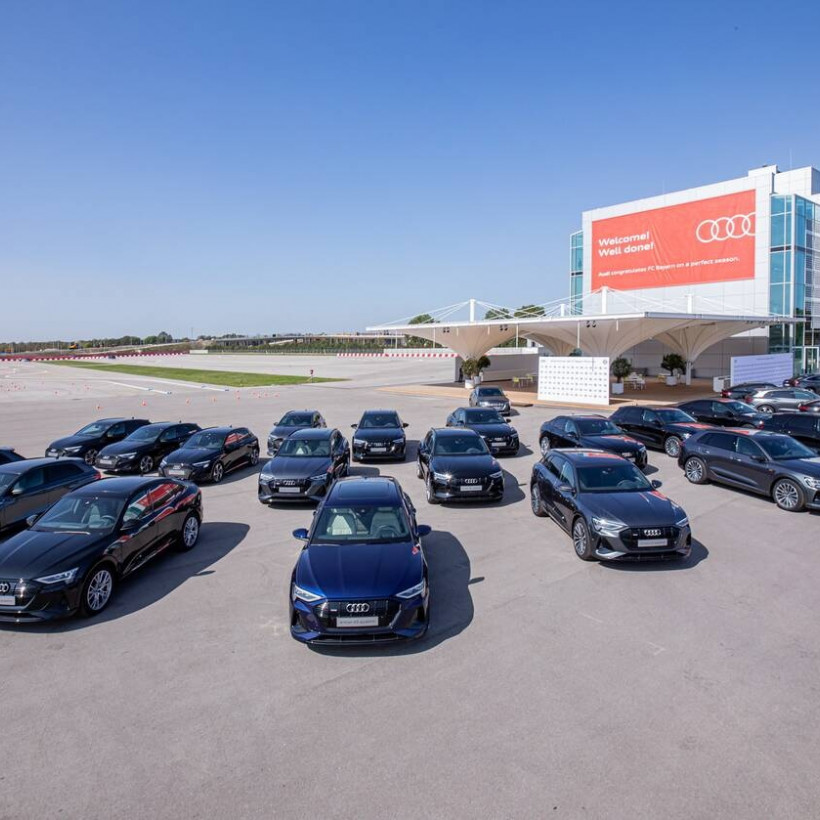 Αυτή τη φορά την τιμητική τους είχαν τα ηλεκτρικά μοντέλα της μάρκας, μιας και η Audi παραχώρησε συνολικά 19 e-tron και e-tron Sportback 55 quattro στην ποδοσφαιρική ομάδα. Παράλληλα εγκατέστησε και φορτιστές στο προπονητικό κέντρο, προκειμένου να μπορούν να φορτίζουν όση ώρα διαρκεί η προπόνηση.