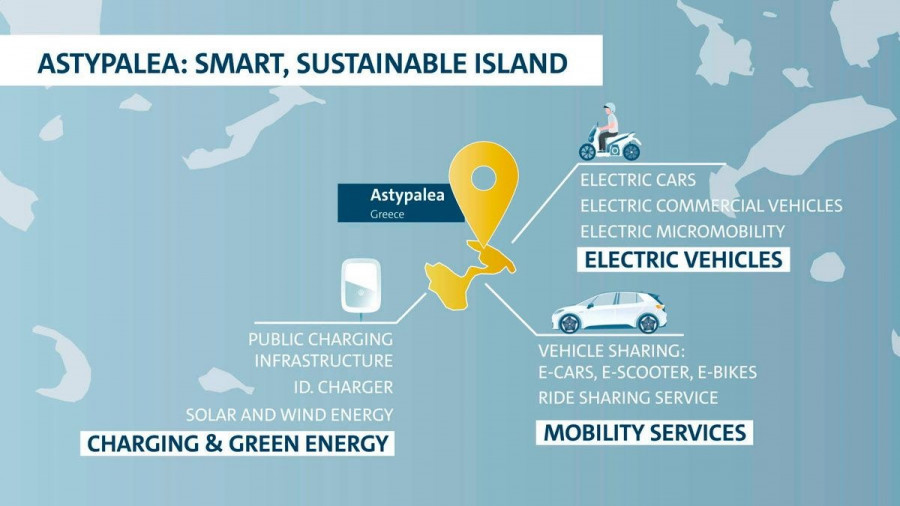 Σύμφωνα με το δελτίο Τύπου: «Ο Όμιλος Volkswagen και η Ελλάδα συμφώνησαν να δημιουργήσουν ένα πρωτοποριακό σύστημα κινητικότητας στο νησί της Αστυπάλαιας. Για το σκοπό αυτό, το τρέχον σύστημα μεταφορών στο νησί θα μεταβεί σε ηλεκτρικά οχήματα και παραγωγή ανανεώσιμης ενέργειας. Μακροπρόθεσμα, η Αστυπάλαια θα γίνει ένα πρότυπο νησί για την κλιματική ουδέτερη κινητικότητα.