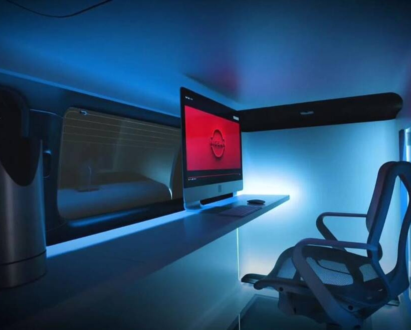 Στο εσωτερικό υπάρχει ένας ανάλογα διαμορφωμένος χώρος με μια επιφάνεια γραφείου για τον υπολογιστή, φυσικά μια καρέκλα, φωτισμός για εργασία και το βράδυ, Wi-Fi hotspot, ηλεκτρικά σκιάστρα για να μην ενοχλεί το φως της ημέρας και πολλά άλλα κομφόρ. Μέχρι και ένα πολυτελές μπαλκόνι οροφής που είναι προσβάσιμο από τον χώρο του γραφείου ή παροχές DC/AC για μικρές ηλεκτρικές συσκευές όπως μία καφετέρια ή ένας βραστήρας νερού.