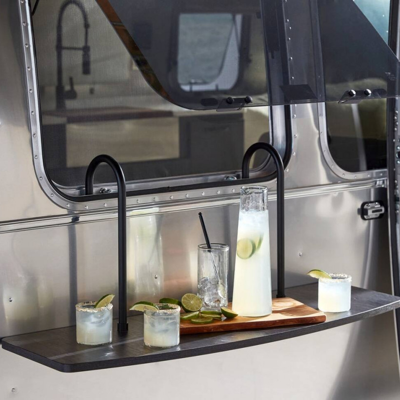 Απέξω το Pottery Barn με το αλουμινένιο αμάξωμα θυμίζει ένα κλασικό Airstream. Ωστόσο, στο εσωτερικό υπάρχει ένας lounge χώρος σε λευκό που περιλαμβάνει ένα σετ από πολυθρόνες Indio, μία σύγχρονη κουζίνα με ανοξείδωτο νεροχύτη και πάγκο από ξύλο καρυδιάς, καθώς και ένα δρύινο τραπεζάκι.