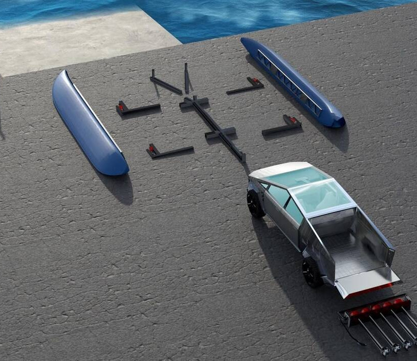 Όπως και να έχει, το κιτ μετατροπής περιλαμβάνει δύο πλωτήρες που προσδένονται στο Tesla με ένα σύνολο από συνδέσμους και μπράτσα. Αφού συναρμολογηθεί το όλο κιτ το Cybertruck μπορεί να τοποθετηθεί πάνω σε αυτό
