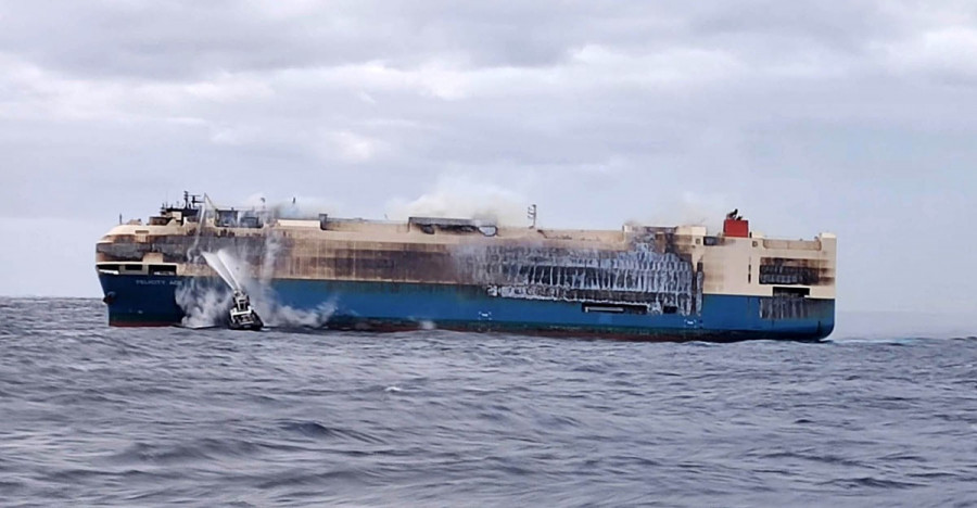 Το Felicity Ace είναι πλοίο ειδικό για τη μεταφορά αυτοκινήτων και την προηγούμενη εβδομάδα τυλίχτηκε στις φλόγες ενώ βρισκόταν περίπου 150 χιλιόμετρα νοτιοδυτικά από τις Αζόρες.