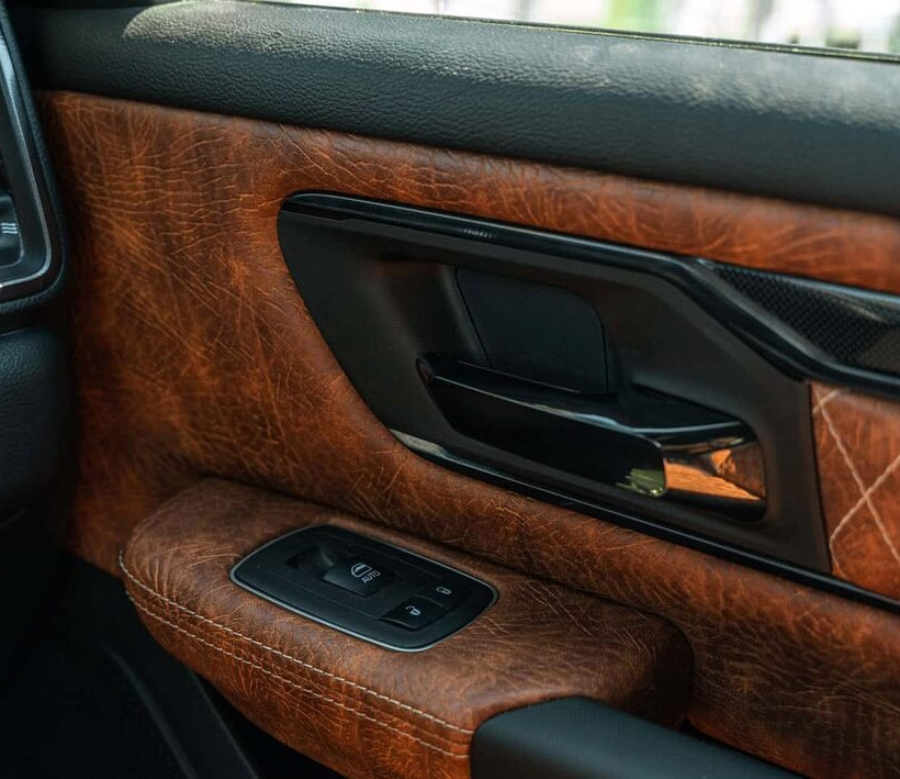 Το εσωτερικό είναι ντυμένο με ένα περίεργο ακατέργαστο δέρμα που ντύνει τα θερμαινόμενα και ψυχόμενα καθίσματα, το ταμπλό και τα υποβραχιόνια. Υπάρχει μια μεγάλη οθόνη αφής 12,0 ιντσών, ένα σύστημα ήχου Surround Harmon Kardon, αισθητήρες στάθμευσης, μια κάμερα περιμετρικού ελέγχου, ηλεκτρικά καθίσματα, ηλεκτρικά πτυσσόμενα σκαλοπάτια και μια πανοραμική ηλιοροφή.