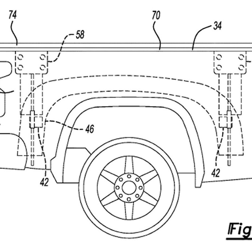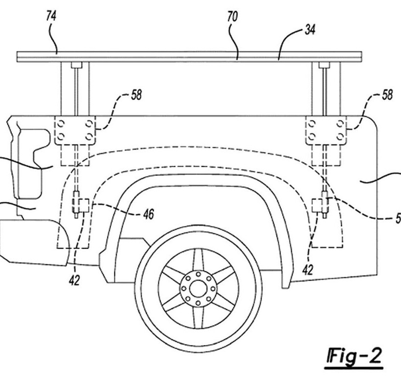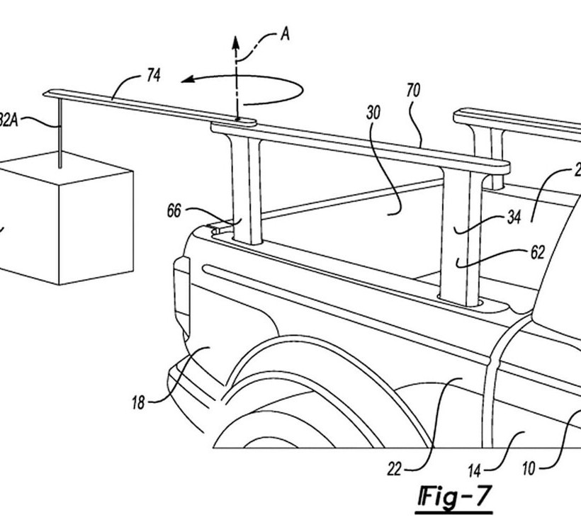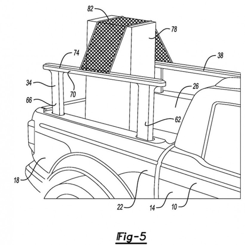 Όπως μπορείτε να δείτε στα σχέδια της πατέντας που κατοχύρωσε η Ford μία έξυπνη λύση θα ήταν τα πτυσσόμενα πλαίσια των πλαϊνών της καρότσας, που όταν αναπτύσσονται θα μπορούν να χρησιμοποιηθούν για την πρόσδεση διαφόρων αντικειμένων.