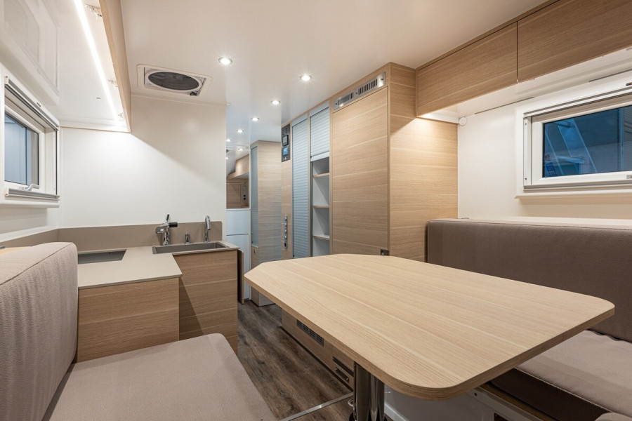 Μάλιστα, τα πάνελ του τροχόσπιτου είναι κατασκευασμένα από ειδικά μονωτικά υλικά ώστε να προσφέρουν ιδανική θερμοκρασία δωματίου τόσο σε περιοχές με πολικό ψύχος όσο και στις πολύ υψηλές θερμοκρασίες στις ερήμους.