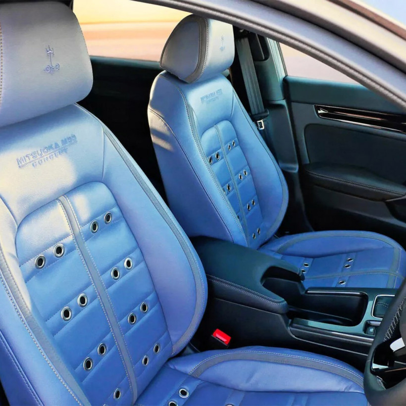 Στο εσωτερικό, οι αλλαγές είναι περιορισμένες. Η Mitsuoka έχει προσθέσει δερμάτινες επενδύσεις σε μπλε απόχρωση για τα καθίσματα, ενώ το λογότυπο της Honda στο τιμόνι έχει αντικατασταθεί με το δικό της.