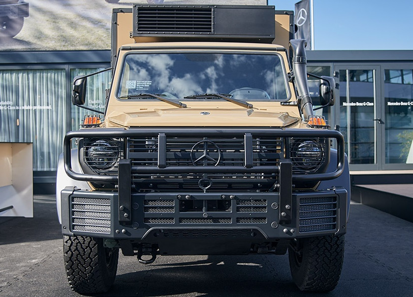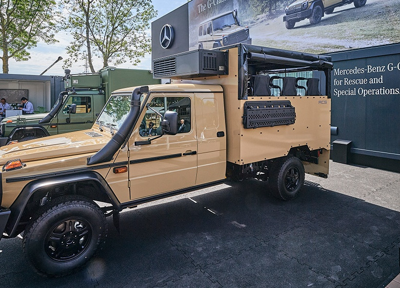 Η βάση πάντως θα είναι το πλαίσιο της 461, της τρέχουσας στρατιωτικής G-Class, ενώ από εκεί και πέρα θα υπάρχουν δύο στιβαροί άκαμπτοι άξονες και προεκτάσεις των φτερών. Ο εξοπλισμός θα περιλαμβάνει μεταξύ άλλων φωτισμό υπερύθρων, καμουφλάζ και παροχή 24 V στο εσωτερικό.