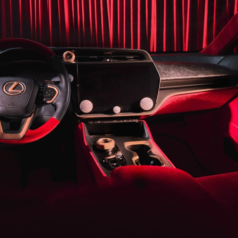 Στο εσωτερικό, η Lexus επιλέγει υλικά που θυμίζουν θήκη μουσικού οργάνου, με δέρμα σε «παλαιωμένη» υφή και βελούδο σε μπορντό αποχρώσεις. Με την εκκίνηση του αυτοκινήτου, ακούγονται οι πρώτες νότες του «Blue in Green», ενισχύοντας τη θεματική προσέγγιση.