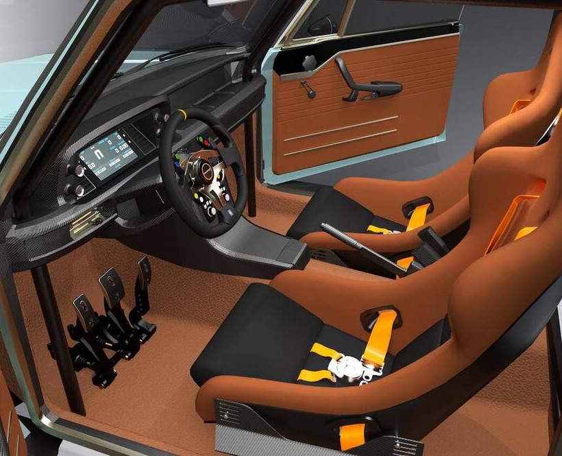 Από κει και πέρα αυτή η BMW 2002 θα έχει όλα τα καλά και ακραία: από μία τεράστια σταθερή πίσω φτερούγα και θηριώδη διαχύτη, μέχρι σούπερ χρυσές ζάντες και χαμηλά σπόιλερ. Όσο για το εσωτερικό περνά σε άλλη διάσταση που θυμίζει αγωνιστικό χάρη στο τιμόνι με τους πολύχρωμους διακόπτες, τον ψηφιακό πίνακα οργάνων, το σειριακό κιβώτιο και το σπαρτιάτικο διάκοσμο. Ρετρό νότα το αναλογικό ρολόι στο κέντρο του ταμπλό.