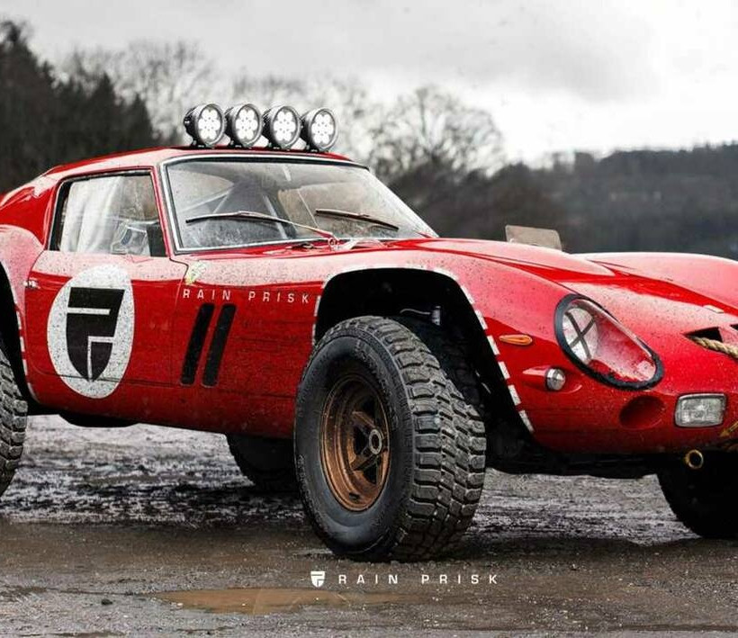 Από την άλλη η επεξεργασία εικόνας δημιουργεί τους δικούς της μύθους και εδώ ο Rain Prisk ξεδιπλώνει το ταλέντο του για να μας παρουσιάσει μια 205 GTO όπως δεν την έχουμε δει ποτέ ξανά. Όπως μπορείτε να δείτε πρόκειται για μία εκδοχή… SUV -όταν η διάσημη Ferrari κατασκευαζόταν πάντως ο όρος SUV δεν υπήρχε ούτε ως σκέψη- με αυξημένη απόσταση από το έδαφος, μεγάλους τροχούς που εξέχουν από τους κομμένους θόλους και προβολείς στην οροφή.