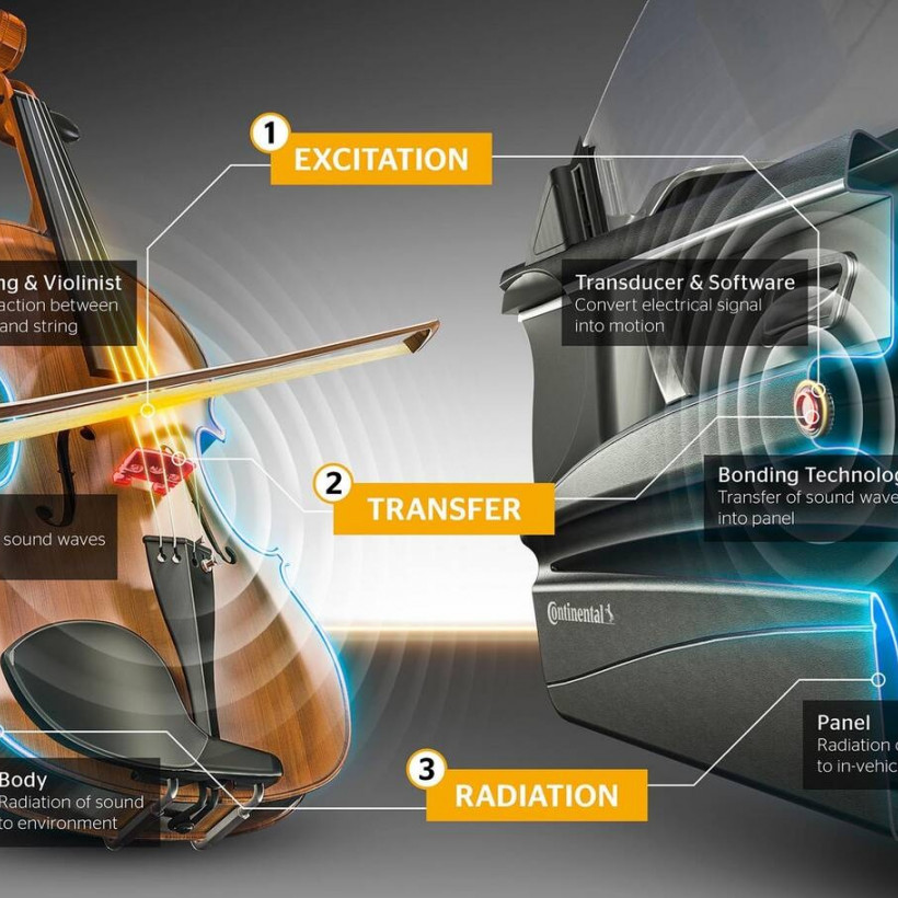 Το οποίο ονομάζεται Ac2ated Sound και η ιδιαιτερότητά του είναι πως για την αναπαραγωγή ήχου δεν χρησιμοποιεί τα κλασικά ηχεία αλλά τις επιφάνειες και τα πάνελ της καμπίνας! Η Continental για να κάνει πιο κατανοητή την τεχνολογία του Ac2ated Sound, την παραλληλίζει με ένα βιολί, στο οποίο ο ήχος ανακλάται και αλλάζει πάνω στο ξύλινο σώμα.