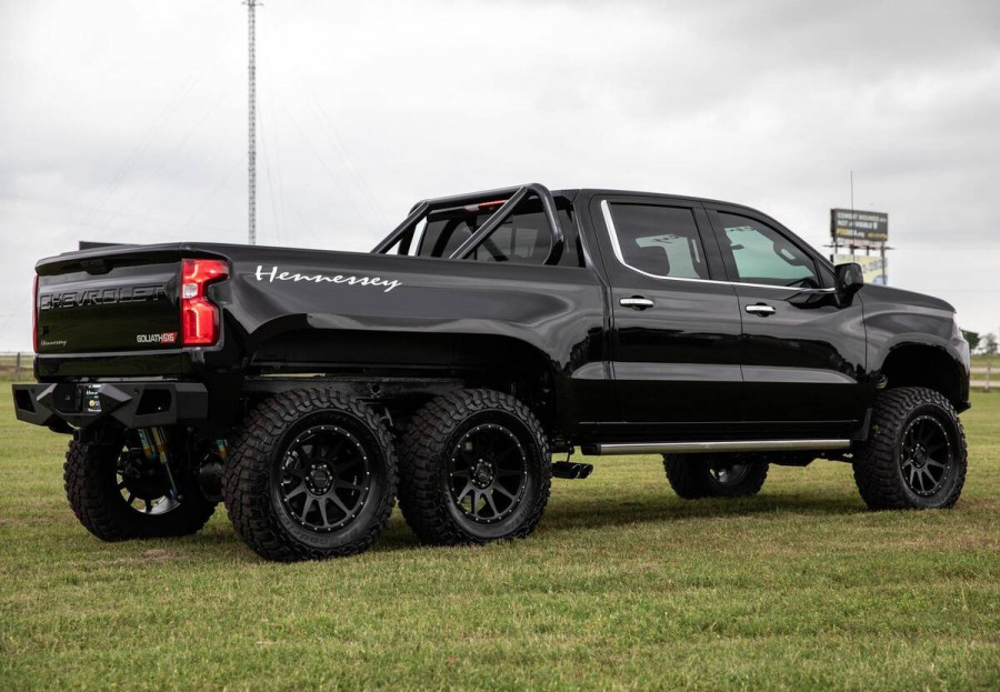 Έκτοτε έχουν παρουσιαστεί μερικά άλλα one-off τριαξονικά αγροτικά, από Toyota Hilux μέχρι ανακατασκευασμένο Land Rover Defender, ενώ τώρα έρχεται η Hennessey να παρουσιάσει ένα αντίστοιχο Chevrolet Silverado. Το οποίο χαϊδευτικά το λέει Goliath, όνομα που ταιριάζει τόσο με τις θηριώδεις διαστάσεις του όσο και με την τιμή του των 350.000 δολαρίων.