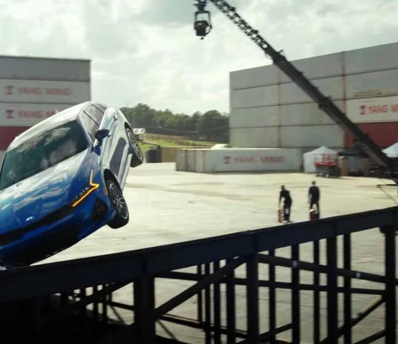 Ωστόσο, ανεβαίνοντας στην ράμπα ο οδηγός κάνει μια τιμονιά και τo Kia αλλάζει διεύθυνση κάνοντας μια στροφή στον αέρα γύρω από τον εαυτό του!