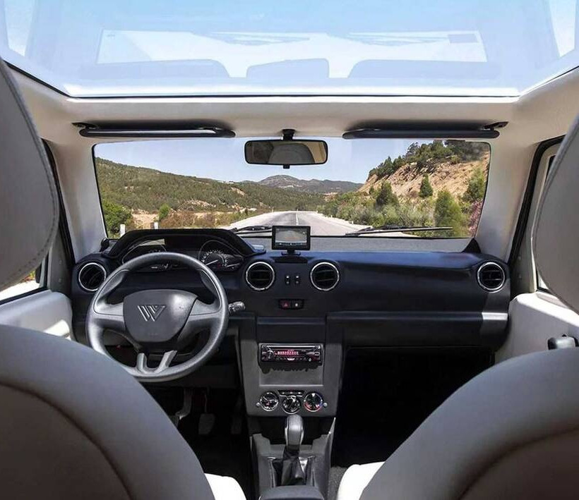 Στο εσωτερικό η εικόνα έχει… γούστο, καθώς μοιάζει με μία… αφρικανική εκδοχή του i-Cockpit της Peugeot. Κυρίως λόγω της τοποθέτησης του πίνακα οργάνων ψηλά στο ταμπλό με το σχετικά μεγάλο τιμόνι να μην βοηθά όμως και τόσο. Πάντως, υπάρχει μια… λαμπερή οθόνη αφής (με κάμερα οπισθοπορείας!) που μοιάζει σα να έχει φυτρώσει στην κεντρική κονσόλα, ενώ περίεργη είναι η θέση των διακοπτών για τα ηλεκτρικά παράθυρα στο μέσο του ταμπλό και ανάμεσα στους δύο αεραγωγούς. Αξιοσημείωτο είναι πως με 600 ευρώ υπάρχει πακέτο για ηχεία, πιο άνετα καθίσματα, μεσαίο υποβραχιόνιο και επιπλέον ηχομόνωση.