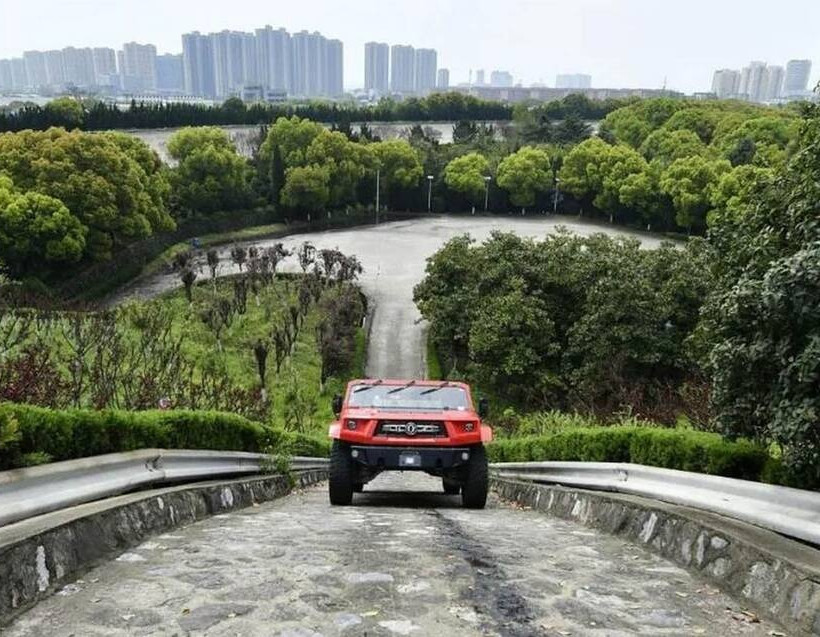 Δεν χρειάζεται και πολύ για να αντιληφθείς με τι μοιάζει αυτό το κόκκινο 4x4 με τα σήματα της Dongfeng. To οποίο έχει την χαρακτηριστική ονομασία Warrior M50 (δηλ. πολεμιστής) αφού σύμφωνα με τους Κινέζους μπορεί να υπερκεράσει τα περισσότερα εμπόδια που θα βρεθούν μπροστά του στις εκτός δρόμου διαδρομές.