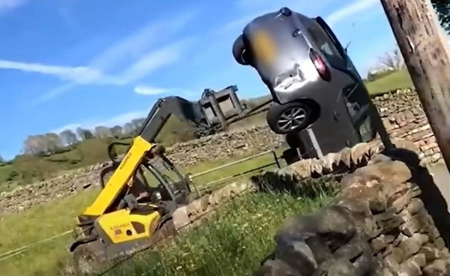 Το περιστατικό συνέβη κάπου στη Μεγάλη Βρετανία. Πρωταγωνιστής είναι ένας 57χρονος αγρότης ονόματι Robert Hooper ο οποίος χρησιμοποίησε το περονοφόρο του για να απομακρύνει ένα αυτοκίνητο με κλαταρισμένα δύο λάστιχα που έκλεινε τον δρόμο προς το σπίτι του.
