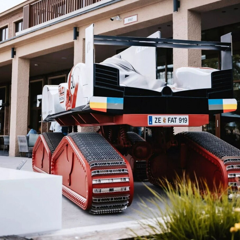 Το θηριώδες F.A.T. 919 Snowcat, όπως ονομάζεται, έχει ως πηγή έμπνευσης την αγωνιστική Porsche με την οποία η γερμανική εταιρία είχε κυριαρχήσει στο Le Mans. Μάλιστα, είχε παρουσιαστεί πέρυσι στο πλαίσιο της εκδήλωσης F.A.T. Mankei που είχε ως κεντρικό θέμα οχήματα παντός εδάφους και ειδικότερα για τις χιονισμένες Άλπεις.