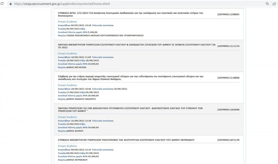 Είναι ενδεικτικό πως στο Κεντρικό Ηλεκτρονικό Μητρώο Δημοσίων Συμβάσεων «Προμηθεύς» αναρτήθηκαν το 2019 συνολικά 79 συμβάσεις δημοσίων φορέων με την KnR συνολικού ύψους 651.568 ευρώ. Το 2020 οι συμβάσεις δημοσίων φορέων με την KnR αυξήθηκαν κατά 35% και ανήλθαν συνολικά στις 106 με το συνολικό τους ύψος να διαμορφώνεται στα 1,48 εκατ. ευρώ. Το 2021 αναρτήθηκαν στο «Προμηθεύς» συνολικά 96 συμβάσεις συνολικού ύψους 997.656 ευρώ, ενώ το 2022 οι συμβάσεις δημοσίων φορέων με την KnR ανήλθαν σε 21 στον αριθμό και το ύψος τους ήταν 506.604 ευρώ. Συνολικά δηλαδή το διάστημα 2019 – 2022 η KnR Governance, Risk, Compliance & Internal Audit Services εξασφάλισε από το Δημόσιο 302 συμβάσεις ύψους 3,6 εκατ. ευρώ!