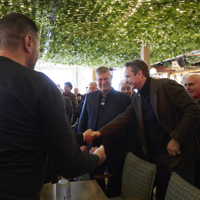 Ο Κυριάκος Μητσοτάκης έκανε βόλτα στην παραλία της πόλης του Ρεθύμνου, μίλησε με πολίτες, έβγαλε σέλφι, ενώ… τίμησε και την περίφημη τοπική τσικουδιά.
