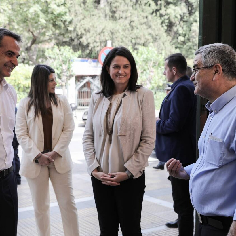 Τον πρωθυπουργό συνόδευσαν η υπουργός Παιδείας Νίκη Κεραμέως και η υφυπουργός Παιδείας Σοφία Ζαχαράκη. Εκεί ο Κυριάκος Μητσοτάκης συνομίλησε με τους καθηγητές αλλά και τους μαθητές.