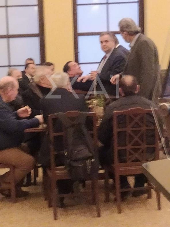 Όπως φαίνεται και στην σχετική φωτογραφία που διέρρευσε, ο βουλευτής της ΝΔ Βασίλης Σπανάκης, ήταν εκείνος που μπήκε ανάμεσα στους δυο άντρες προκειμένου να ηρεμήσουν τα πνεύματα.