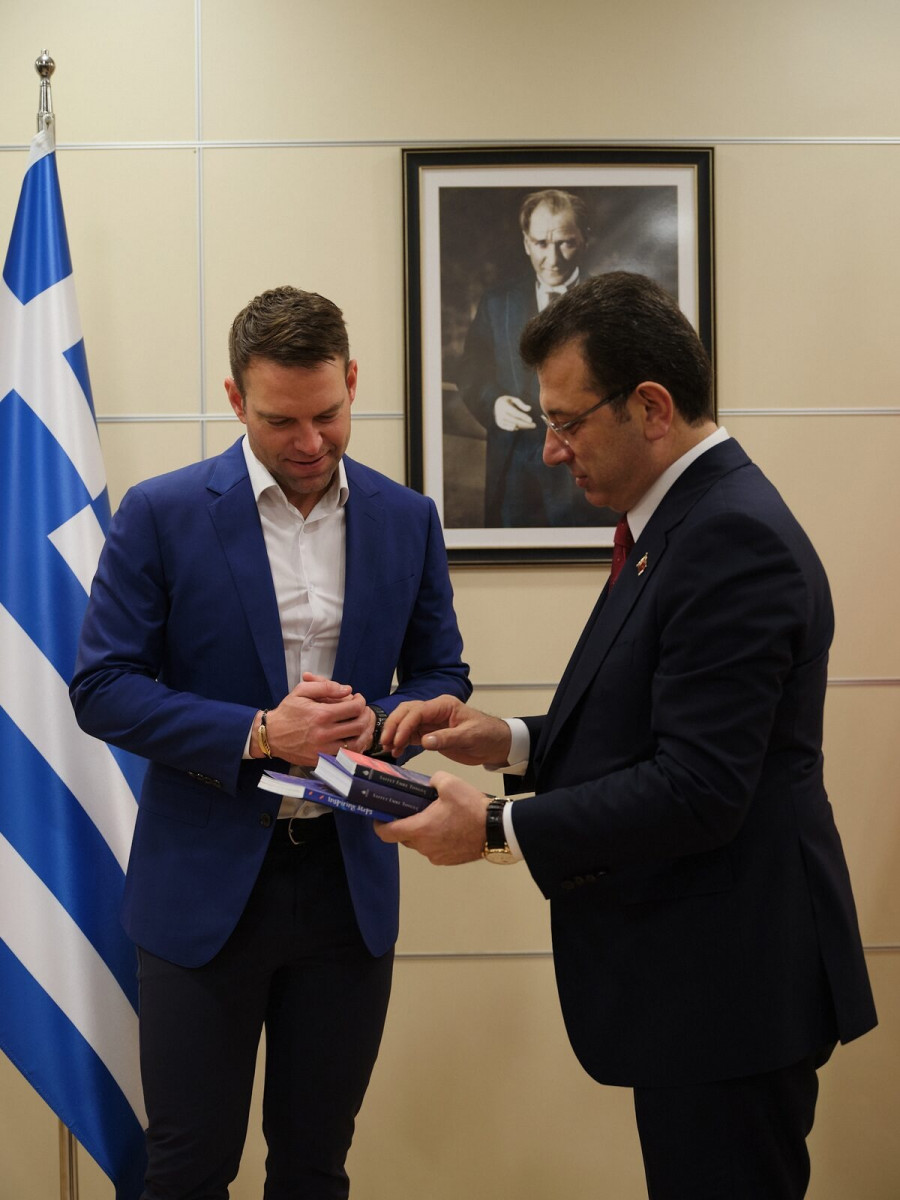 Μετά λοιπόν τα... «Κατεχόμενα» που δεν ήξερε πως να τα αποκαλέσει και τα είπε «κρατίδιο» (και το έριξε στα όχι καλά ελληνικά του»), αλγεινή εντύπωση προκαλεί το γεγονός ότι φωτογραφήθηκε περιχαρής, με τον δήμαρχο Κωνσταντινούπολης Εκρέμ Ιμάμογλου, κάτω από το πορτρέτο του Κεμάλ Ατατούρκ.
