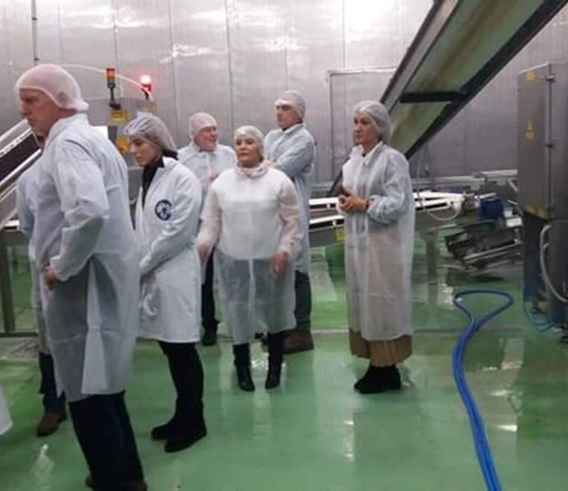 Με διχτυωτό σκουφάκι και άσπρη στολή περιηγήθηκε σε όλους του χώρους της μονάδας παραγωγής. Πηγή: Πηγη: Eurokinissi
