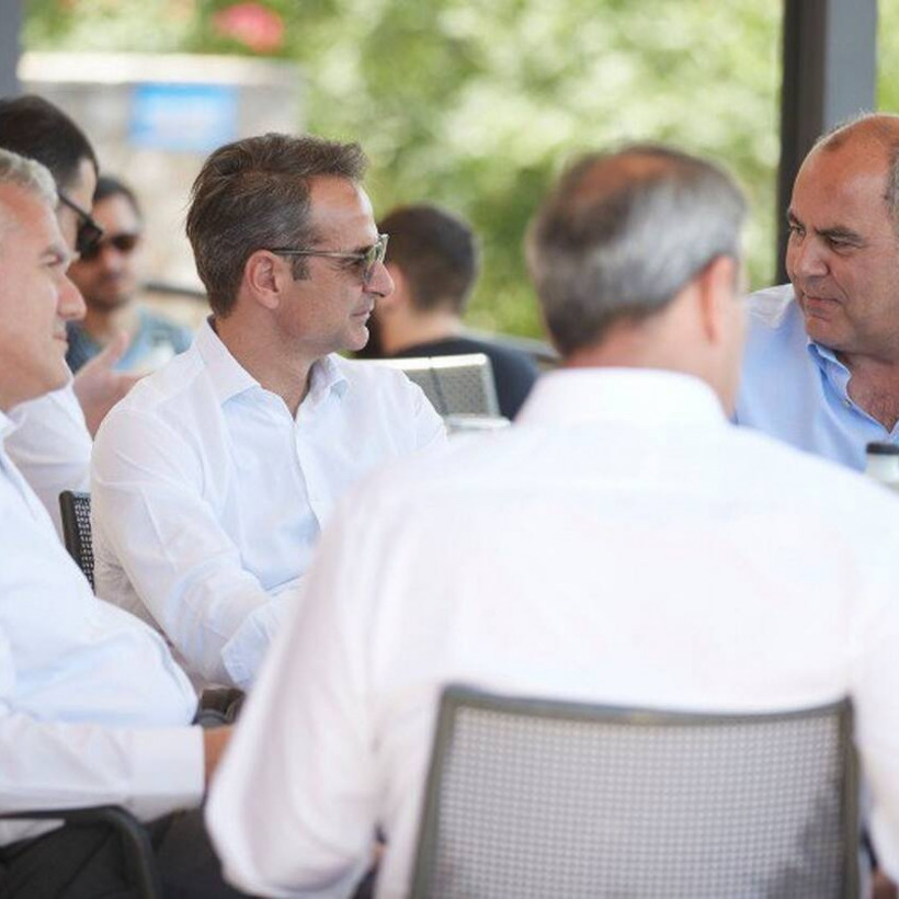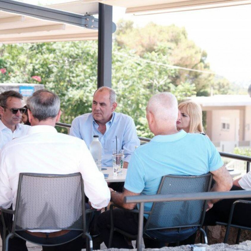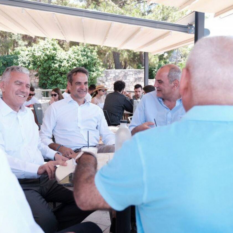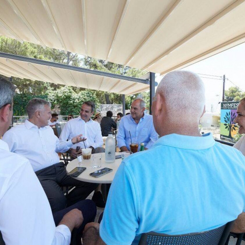 Χανιά: Χαλαρά για καφέ με τους βουλευτές της ΝΔ ο Κυριάκος Μητσοτάκης