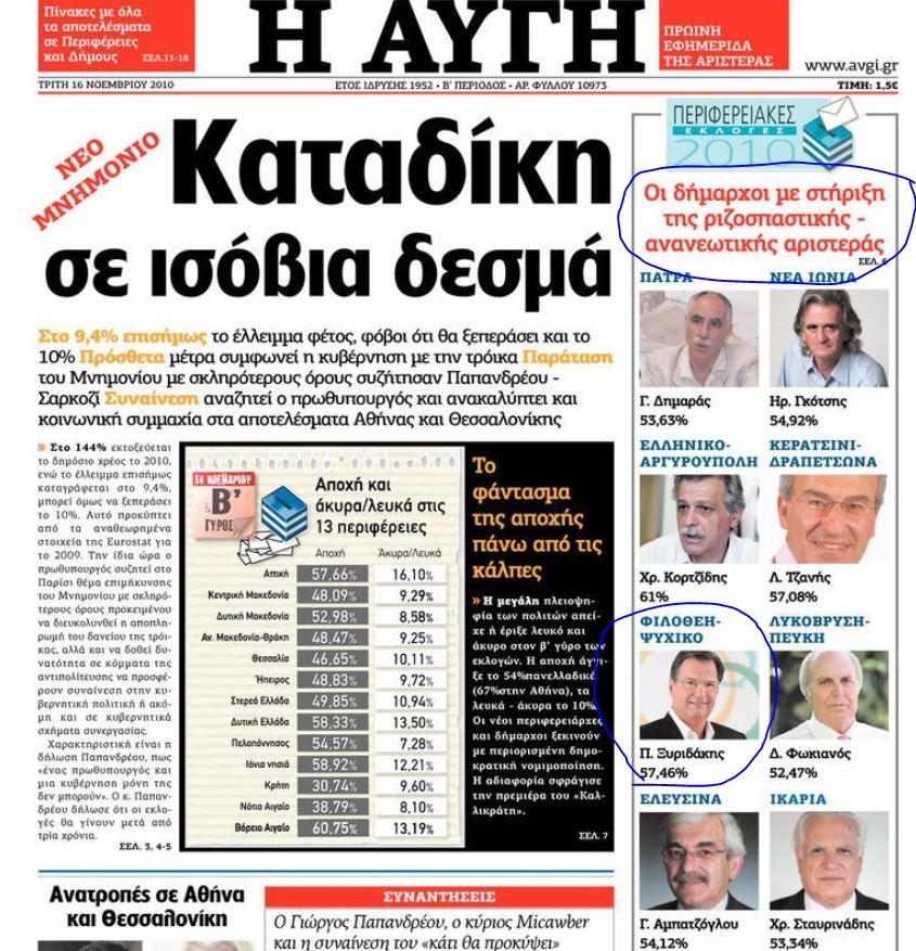 Τότε η Αυγή τον παρουσίαζε ως δήμαρχο υποστηριζόμενο από τον ΣΥΡΙΖΑ...