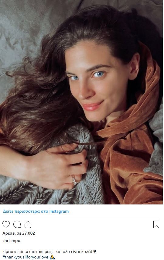 Το βράδυ του Σαββάτου (20/02) η όμορφη εγκυμονούσα μέσα από μία φωτογραφία στο Instagram, ανακοίνωσε στους followers της ότι είναι καλά και βρίσκεται στο σπίτι της.