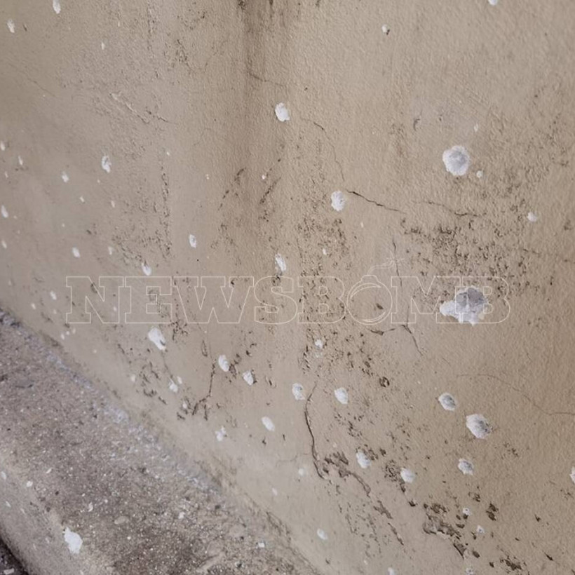 Τρύπες στους τοίχους από τη χειροβομβίδα Πηγή: Newsbomb.gr/Νίκος Χριστοφάκης