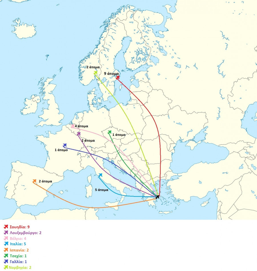 Με την ολοκλήρωση και παράδοση των εγγράφων, τους συνόδευαν στον Διεθνή Αερολιμένα Αθηνών έως και την επιβίβασή τους σε αεροσκάφη πτήσεων προς ευρωπαϊκούς προορισμούς, καθοδηγώντας τους σε όλα τα στάδια για την αποφυγή αστυνομικού ελέγχου.