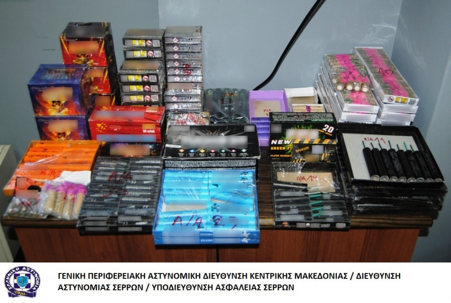 Πάνω από 2.000 κροτίδες, αυτοσχέδιες πυροτεχνικές κατασκευές, πυρσούς, μαχαίρια και ρόπαλα, είχε μεταξύ άλλων στο σπίτι του ένας 22χρονος στις Σέρρες.