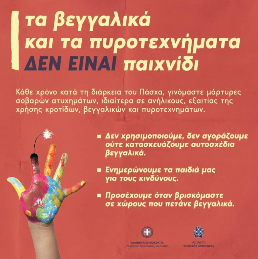 Συμβουλές για αποφυγή χρήσης κροτίδων, βεγγαλικών και αυτοσχέδιων ειδών πυροτεχνίας κατά την περίοδο των εορτών του Πάσχα