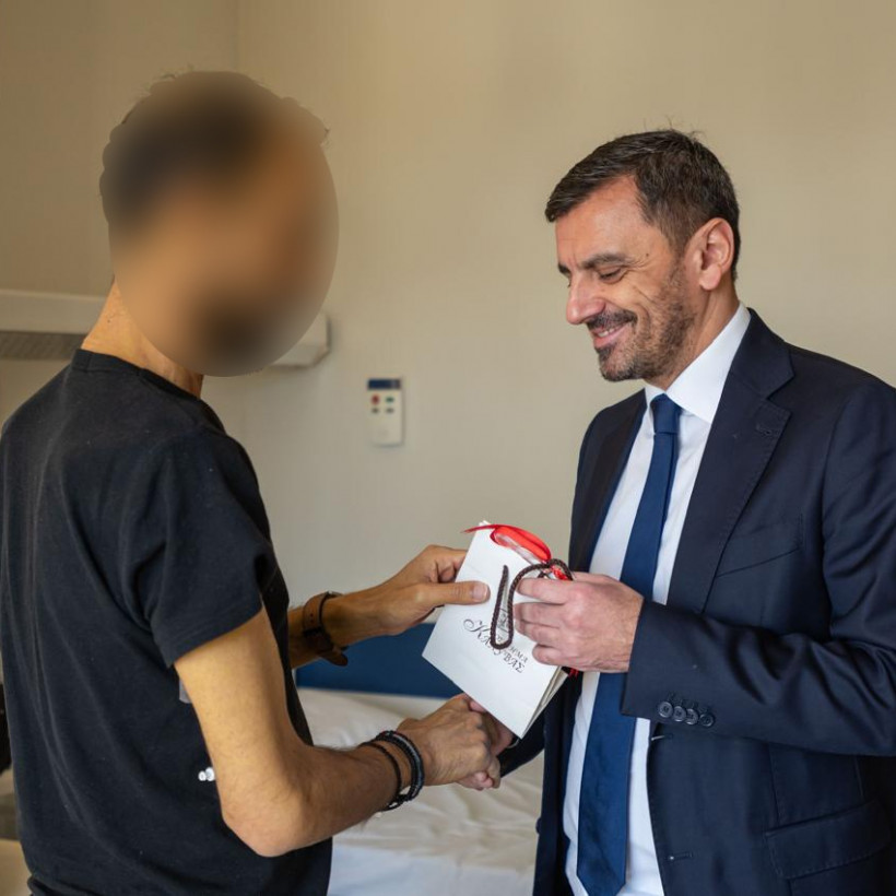 Στους νοσηλευόμενους αστυνομικούς προσέφεραν συμβολικά δώρα και τους ευχήθηκαν ταχεία ανάρρωση, ενώ ενημερώθηκαν από τους θεράποντες ιατρούς για την κατάσταση της υγείας τους.