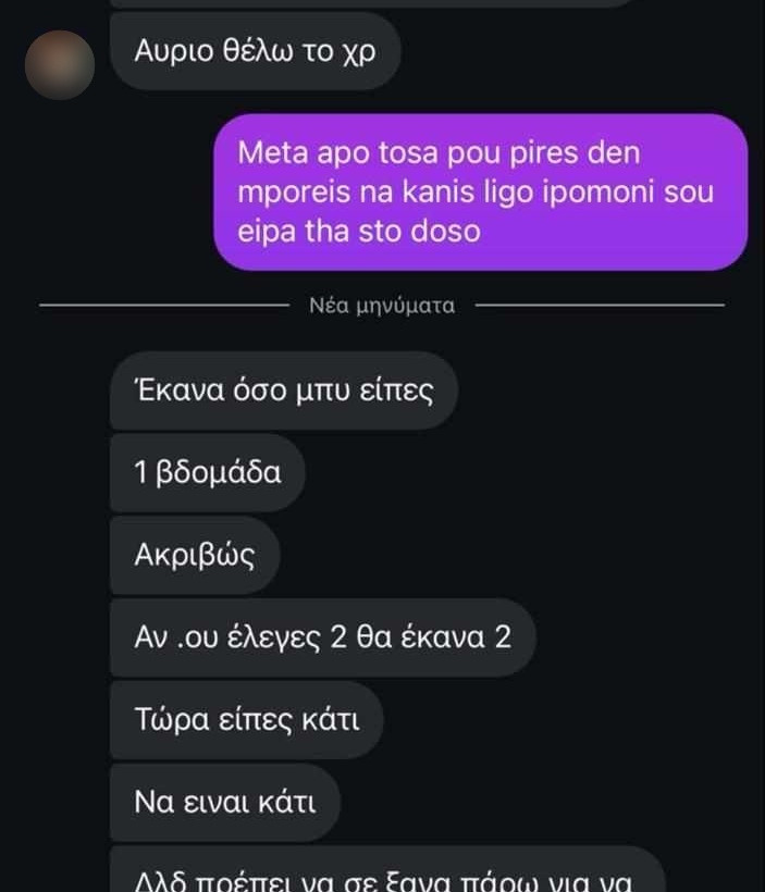 Ωστόσο, όπως φαίνεται από τους διαλόγους, η εβδομάδα πέρασε και το θύμα δεν έδωσε τα χρήματα. Τότε ο κατηγορούμενος εξαγριώνεται και λέει από την πλευρά του «Παναγιωτάκη, μην παίζεις μαζί μου».