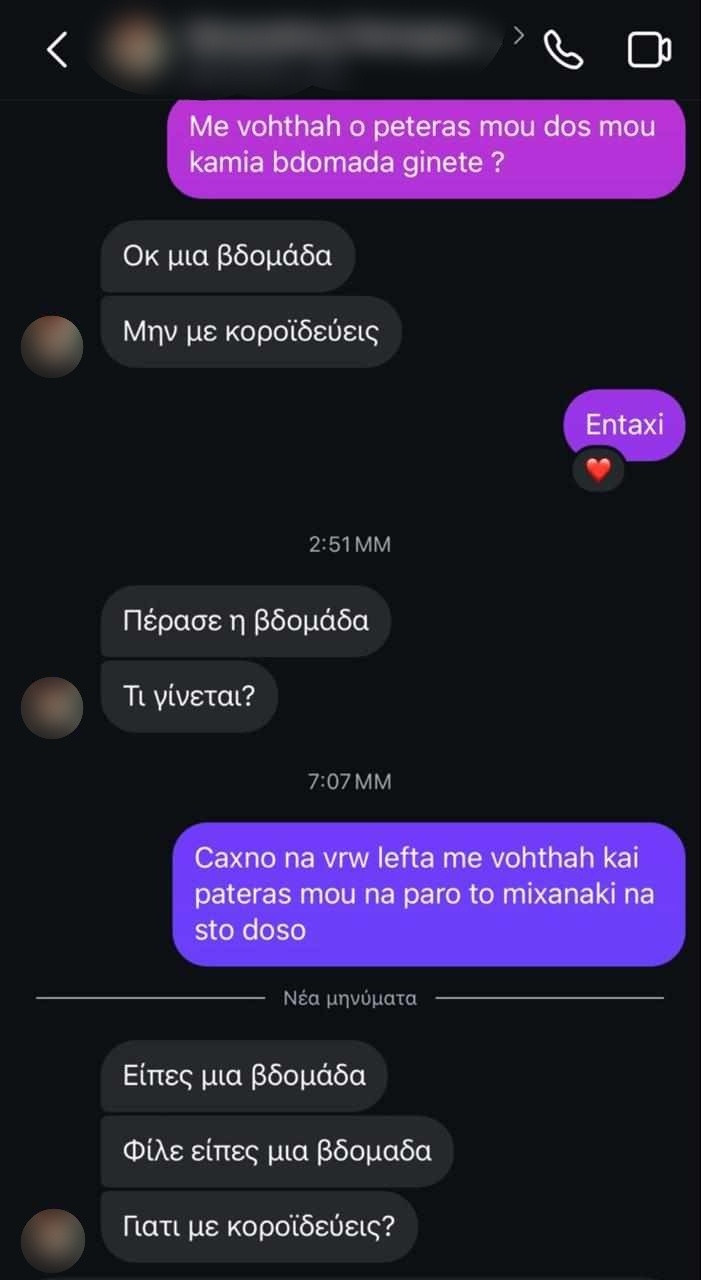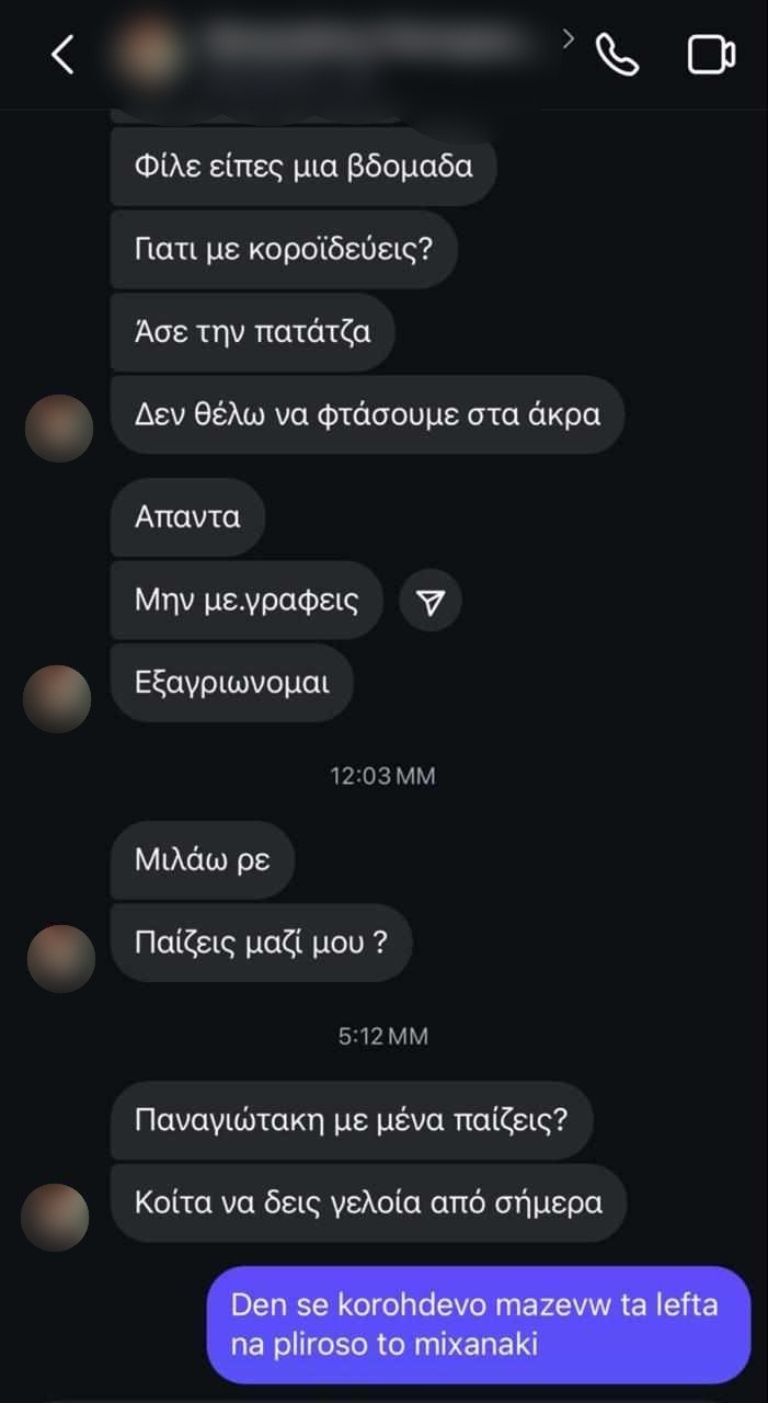 Σε διαλόγους ανάμεσα σε έναν εκ των κατηγορούμενων για την υπόθεση και του 24χρονου, φαίνεται να μιλάει με τον νεαρό και να του ζητά επιτακτικά χρήματα.