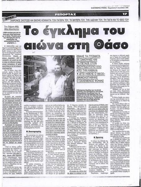Ήταν 8 Αυγούστου 1996. Η μικρή κοινωνία της Θάσου παγώνει...